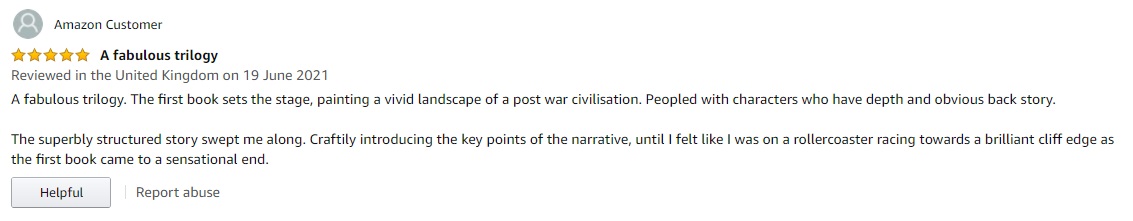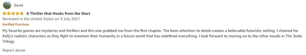 2021 has been a good year for reviews for ‘The State Trilogy’ so far on Amazon and Goodreads, so I thought I’d round them up and share them. As always, I’m grateful and appreciative of any reader who takes the time to leave a few words – it is the best way to help out any author, but especially an independent one. Thanks so much to everyone who has bought, read, liked (or disliked!), loved and reviewed. More news about my next book to follow soon.